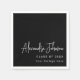 Celebrate your graduate in style with this modern trendy script graduation party napkin featuring a sleek black background and elegant, stylish white script. The minimalist design is perfect for a chic and contemporary graduation celebration. Personalize easily using our custom templates — add your graduate’s name, high school or college, and class year in seconds. Ideal for graduation parties, open houses, and memorable events.