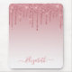 Modern Elegant Fashionable and Trendy Dusty Pink Rose Glitter Mouse Pad personalized with your Name. Stylish Script.