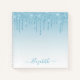 Modern Elegant Fashionable and Trendy Light Blue Glitter Notebook personalized with your Name. Stylish Script. Dripping Glitter with sparkles.