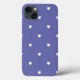 This beautiful iPhone 13 case features a cute Valentine's Day pattern with tiny white hearts on a trendy periwinkle background.