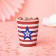 Proclaim your patriotism clearly with these modern red and white striped cups adorned with a central blue, white, and red star. It's the perfect way to have an on-theme 4th of July party that doesn't blend into the crowd.