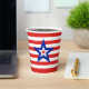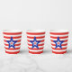 Modern Tri-Coloured Star on Red/White Striped Paper Cups