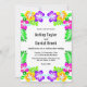 This elegant tropical wedding invitation is perfect for a modern summer wedding. The simple design features bloom yellow, purple, and pink flowers with elegant black typography on a white background.