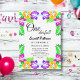 This elegant tropical birthday invitation is perfect for a modern summer birthday. The simple design features bloom yellow, purple, and magenta flowers with elegant black typography on a white background.