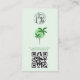 This elegant and customizable event planning business card template features a soft pastel tropical green background with a minimalist tropical design. The front of the card showcases a refined illustration of two palm trees in a light green hue, creating a sophisticated yet tropical vibe, all colours are fully editable to match your branding. The layout is designed to highlight your business name, contact details, and social media handles in an organized manner. On the back, the palm tree illustration is repeated. There is a placeholder for your logo at the top, followed by a QR code that can link to appointment scheduling, price lists, or portfolio pages. This ensures all essential information is easily accessible, while maintaining a clean and modern look. This business card is perfect for event planners who specialize in weddings, birthday parties, and other special occasions. The design is fully editable, allowing you to customize the colours, text, and logo to match your brand identity.