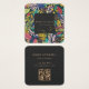 Make a bold impression with this vibrant, square business card template. Featuring a lush, colorful tropical leaf border against a sophisticated black background, this design is perfect for jewelry designers, artists, and creative professionals. The template includes a dedicated space for a QR code on the back, seamlessly blending artistic flair with modern digital networking.