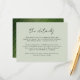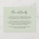 These simple, stylish wedding enclosure cards feature elegant typography reading, "the details" in black over a custom colour background (shown in light sage green). The back contains a banana leaf design, perfect for a tropical or beach themed wedding!