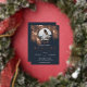 Modern simple real rose gold palm tree watercolor with simple typography, a trendy and tropical wedding theme on palm tree leaf. Add your couple photo on editable simple minimalist dark navy blue background.