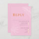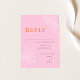 This Wedding RSVP Card from the Leilani Collection features bright, bold colours and modern typography, sure to make a lasting impression on your guests! Personalize it with your details easily and quickly. Simply press the 'customize it' button to further re-arrange and format the style and placement of the text.