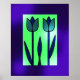This sleek and modern tulip design brings a fresh, minimalistic vibe with its bold outlines and clean symmetry. Set against a soft green background with a gradient purple frame, the tulips exude elegance and simplicity. The stylized flowers create a calming balance between nature and contemporary art, making this a versatile piece for both traditional and modern spaces.