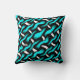 Modern throw pillow features an organic basketweave pattern in shades of turquoise with black and white accents. An artistic design in a trendy colour palette, this decorative pillow will add a splash of colour to any modern room's decor.