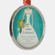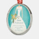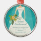 Modern Turquoise Chartreuse Damask Wedding Metal Ornament