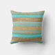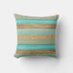 Modern Turquoise Faux Gold Glitter Stripes Pattern Throw Pillow
