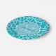 Modern Turquoise Giraffe Print Monogram With Name Paper Plate
