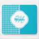 Modern Turquoise Houndstooth Monogram and Name Mouse Pad