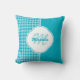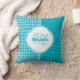 Modern Turquoise Houndstooth Monogram and Name Throw Pillow