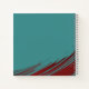 Modern notebook features a minimal artistic design in a complimentary turquoise and red colour palette. Personalized name and sketchbook with volume number presented right justified, framed by a minimalistic artistic swoosh design.