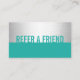 Modern Turquoise & Silver Beauty Salon Referral Card.
