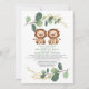 Modern Twin Lion Greenery Gold Baby Shower By Mail Invitation