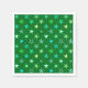 Paper napkins in a Mid-Century Modern pattern of twinkling stars in shades of lime green, jade, aqua and turquoise, outlined in complementary colours, on a deep emerald green background