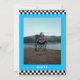 This fun second birthday invitation has multicolor assorted sunglasses clipart and a race stripe border. The unique back of the invitation has a matching blue and race stripe border with your child's photo.