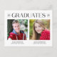 This double graduation postcard celebrates two graduates. The modern grad announcement features two photos (one for each grad) with templates below to add their names and schools. At the top, the word "Graduates" is written in minimalist typography and framed by "20" on one end and "22" on the other end for a contemporary look. On the back, you can add a custom message and/or your graduation party details. Perfect for a double graduation with twins, siblings, sisters, and brothers!