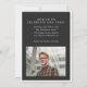 Celebrate their graduation with a modern photo invitation featuring a framed portrait on the front and a second photo with party details on the back. The clean black and white layout keeps the focus on the graduate while still feeling polished and timeless. Perfect for a graduation party or open house celebration. Personalize with name, school, class year, date, and event information.