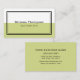 Modern styling highlights this custom business card design in two-tone colour block. Colours include lime green and white with contrasting black text and a double line frame surrounding your text. This versatile design is a wonderful choice for many professions. Personalize the text template on both sides of this card with your details.