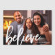 Inspirational Christmas card magnet features believe in white brush script and one full photo with customized name. Shop this store for coordinating products and holiday colour options.