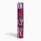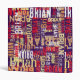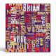 The dark purple background forms the perfect canvas for the typography-inspired patterns. This rich backdrop enhances the contrast of the distressed fonts, creating a visually striking and balanced composition.