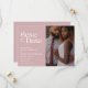 Modern minimal design with one vertical photo and trendy typography on dusty rose background. The text and photo can easily be personalized for a unique one of a kind design for your special day.