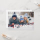 Personalized holiday photo card. Modern minimalist Christmas card design template with a custom family photo and typography element "Peace". The reverse side of this version is blank, leaving room for a handwritten personal note to your loved ones. Celebrate the season with this unique photo holiday card and share your wishes with your loved ones © y.BEE PAPERIE #ZazzleMade #christmascardtemplate #holidayphotocards #christmasphotocards