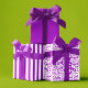 Enjoy this modern typography written pattern that has: Girl and Baby Shower written in english script in a bold purple and white background. Plus, a solid, purple and a striped purple/white second and third sheet.