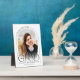 This white and black simple minimalist graduation photo plaque is modern and classy, with a photo of the grad in an arch frame, and elegant modern typography.