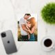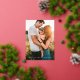 This modern holiday photo card features one vertical "full-bleed" photo and a modern typography greeting which says "JOYFUL". The back of the card is a coordinating red with white stripe pattern. You can also add another photo and/or additional text to the back!