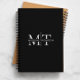 This Notebook features a sleek, minimalist design with a dark background and contrasting white text. Large, serif-style initials are centred and divided by a thin vertical line for symmetry, with smaller uppercase text below in a modern sans-serif font. The layout is clean and uncluttered, creating a refined, professional, and contemporary aesthetic.