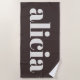 A chic personalized design with a large lowercase name in bold white serif type on a warm earthy brown background. Clean, modern, and easy to spot at the pool or beach. Customize with any name for a simple look that feels classic and elevated. Great for vacations, lake days, swim team meets, and gifts.