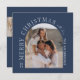 Modern minimal graphic abstract shape photo collage navy blue Christmas holiday card. Bold on trend design. Part of a holiday collection.