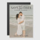 Modern Typography Photo Save the Date Magnet Card. This template features a sophisticated full-photo layout that puts your favorite engagement memory front and center. Using a timeless mix of classic serif typography and a delicate script accent, the "Save the Date" heading is designed to overlay beautifully on your photo. Choose a photo that contrasts with the black text or choose the card option with white text at Cross Fox Design. Adjust photo placement if needed in the design edit tool. Contact the designer for any customization questions.