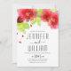 Modern typography red flowers floral wedding invitation