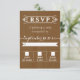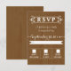 Modern typography rustic wood wedding RSVP respone/reply card featuring modern typography design with vintage elements such as a frame on brown wood. This contemporary and trendy yet with retro elements design with some script fonts is fully customizable and is part of a wedding set.