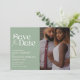 Modern minimal design with one vertical photo and trendy typography on sage green background. The text and photo can easily be personalized for a unique one of a kind design for your special day.