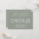 Modern Simple Typography Sage Green Wedding. Modern elegance with this fully customisable classy text only design. Easily personalise the words and, if you have a wedding website, automatically generate a QR code for it on the back by replacing the sample URL to that of the URL of your wedding website. You can delete the sample QR code if not required via the edit further option, where you can also edit text colours and styles and background colours on each side if you so wish.