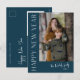 Modern Typography Simple Photo New Year Holiday postcard features a vertical photo and headline with customizable script name and text on the front. The back has a personal message and signature. Click the edit button to personalize this design.