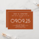 Modern Simple Typography Terracotta Wedding. Modern elegance with this fully customisable stylish text only design. Easily personalise the words and, if you have a wedding website, automatically generate a QR code for it on the back by replacing the sample URL to that of the URL of your wedding website. You can delete the sample QR code if not required via the edit further option, where you can also edit text colours and styles and background colours on each side if you so wish.
