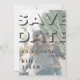 Modern faux vellum typography overlay and custom photo wedding save the date with black and white trendy bold outline script. Easy to personalize on both sides. If you don't need the text on the backside, just delete the template.