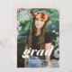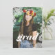 Stylish photo graduation party invitation featuring modern typography and white lace with blue pattern. This invitation is perfect for any graduation theme. Turn this invitation into a graduation announcement by removing the INVITATION TAG and removing the details from the back of the card.