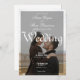 Ideally suited for the modern urban couple planning a sophisticated city celebration. This design blends industrial chic vibes with high-end romance, featuring a stunning full-photo layout that puts your love story front and center.This design features a vertical, full-bleed photography background framed by a thin white line border. All text appears as a crisp white overlay for contrast. The couple's names are displayed in flowing, formal calligraphy script near the center-bottom, followed by the word "Wedding" in large, bold display serif typography. Event details are presented in a clean, classic serif font, completing the minimalist, industrial chic aesthetic. Easy to customize with your details.