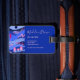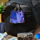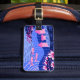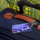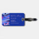 This luggage tag features a vibrant, stylized landscape with a whimsical and modern aesthetic. A rich color palette of deep blues, pinks, and purples to create a layered, multi-dimensional scene.