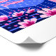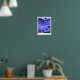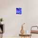 This modern poster features a vibrant, stylized landscape with a whimsical and modern aesthetic. A rich color palette of deep blues, pinks, and purples to create a layered, multi-dimensional scene.